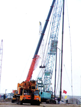 振沖器是振沖法施工中的特制機具。它產(chǎn)生水平向振動力振擠填料及周圍土體,而達到提高地基承載能力、減少沉降量、增加地基穩(wěn)定性、提高抗地震液化能力。 振沖法施工時除原地沖器外,尚需行走式起吊裝置,泵送輸水系統(tǒng),控制操作臺等。如工程單位缺乏起重機,本廠還供應振沖器施工樁架,樁架有單邊滾管立柱式、液壓步履式、簡易履帶式等。